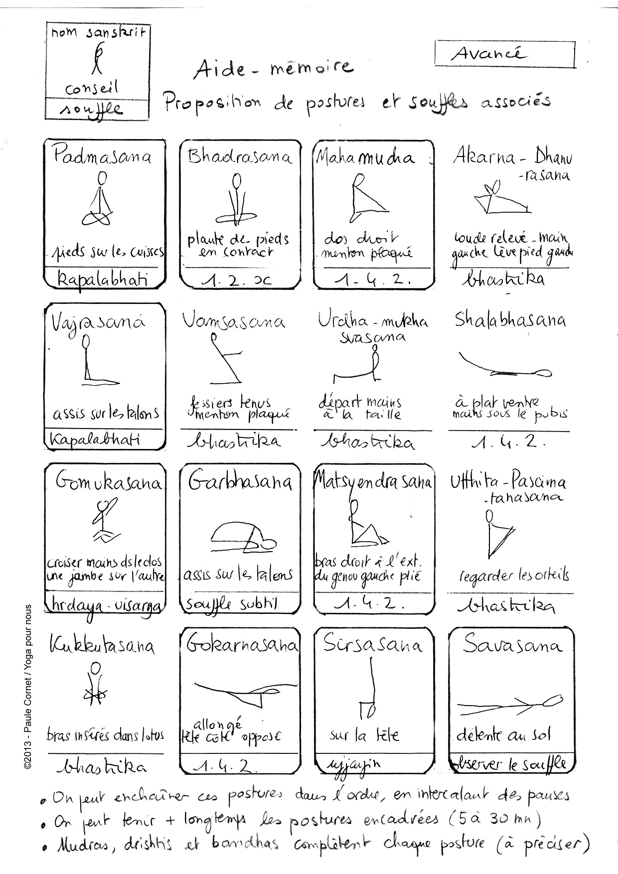 Pour pratiquer tranquillement à la maison entre deux séances, je vous propose un petit mémo, à afficher devant soi pour se remémorer plus facilement les différents appuis et postures.